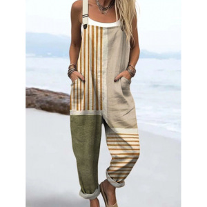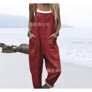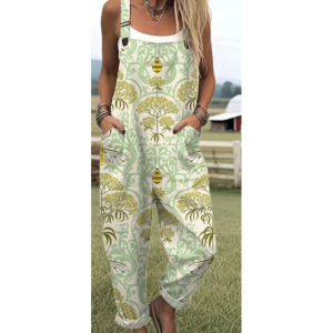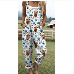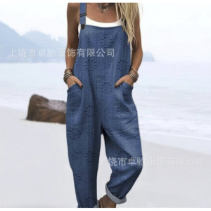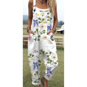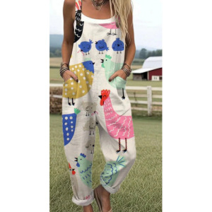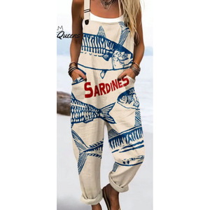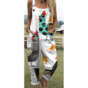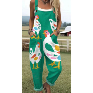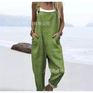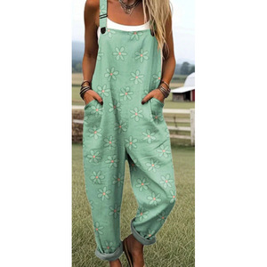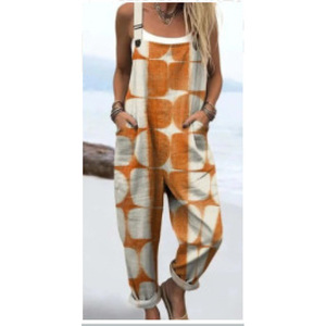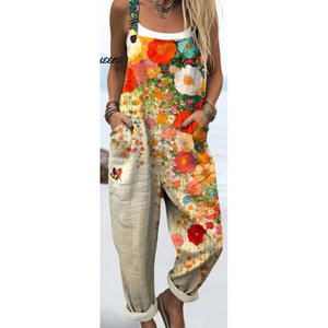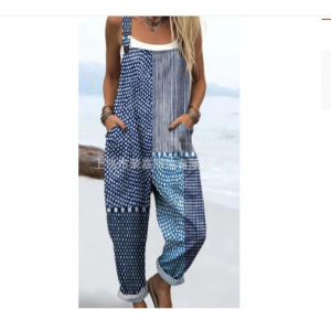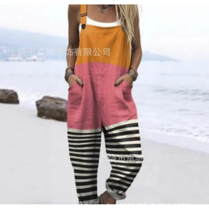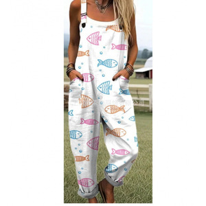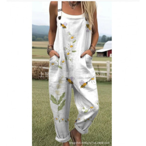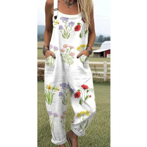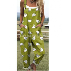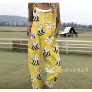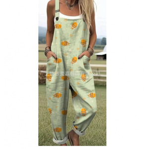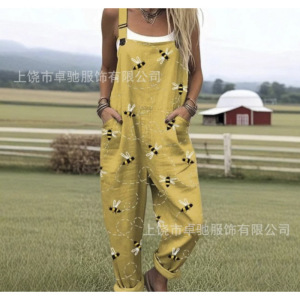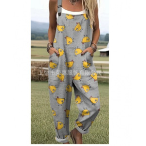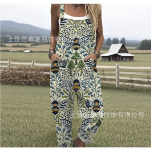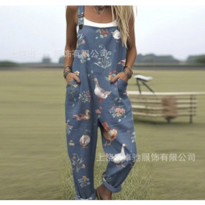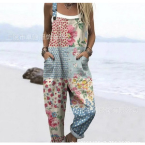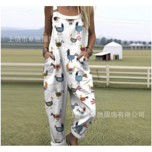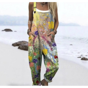 2025跨境新款女装亚马逊欧美夏季数码3D印花扣子背带休闲裤吊带裤