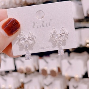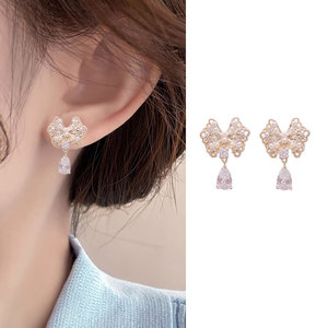 美薇锆石甜美风蝴蝶耳环女小众设计气质高级耳钉百搭时尚耳饰批发