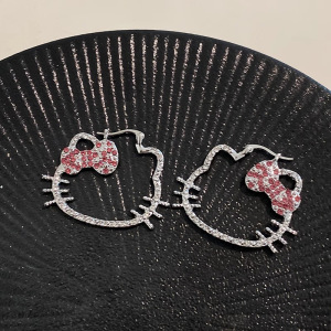 キュートで超キラキラパウダーダイヤモンド中空猫イヤリング2025新作人気イヤリング甘くてかわいい女の子イヤリング気質イヤリング