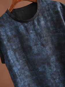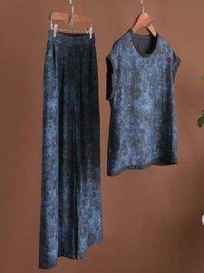 両面着用!ブルースターシルク香りの雲糸インク汚れドロップショルダースリーブマルベリーシルクTシャツ+ワイドレッグパンツ