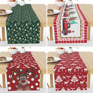 跨境热销圣诞节麋鹿松树家居装饰布艺印花隔热亚麻桌布