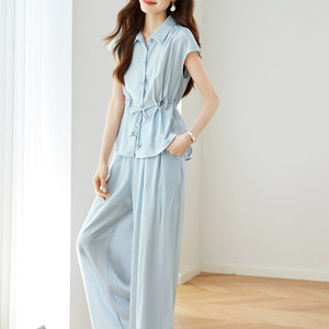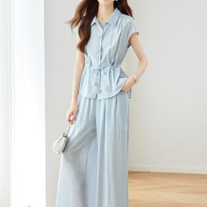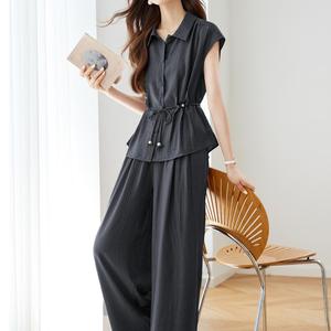 时尚不规则衬衫2025夏季新款遮肉显瘦休闲阔腿裤套装深灰色