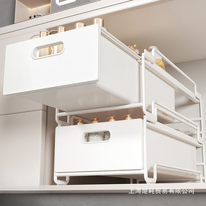 日式下水槽置物架抽拉式浴室柜下收纳盒多层卫生间厨房洗手台架子