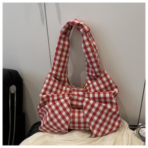 韩风复古格子背心包大容量单肩包轻便购物袋百搭购物袋