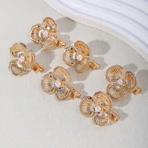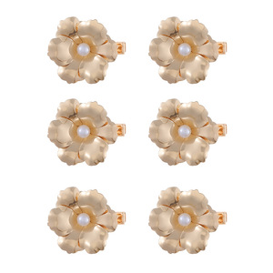 新中式简约个性发夹珍珠水钻合金花朵仿黄金婚礼写真轻奢新娘发夹