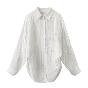 在庫あり 2025 秋の新作レース刺繍カジュアルルーズ長袖シャツトップ 2J3C407