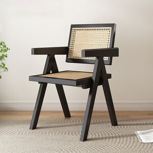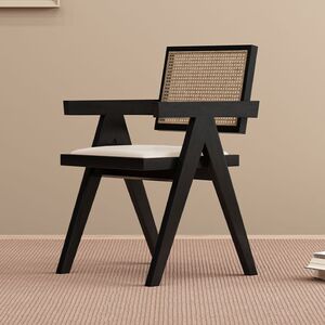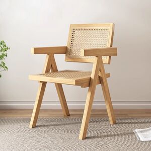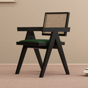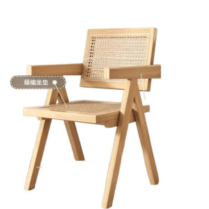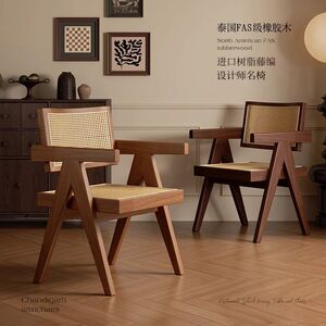 昌迪加尔椅子家用藤编餐椅实木北欧原木风民宿靠背网红侘寂风餐椅