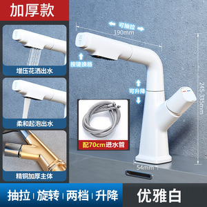 クリームスタイル全銅白リフティング洗面台蛇口家庭用洗面台引き出し式浴室洗面台ホットとコールド