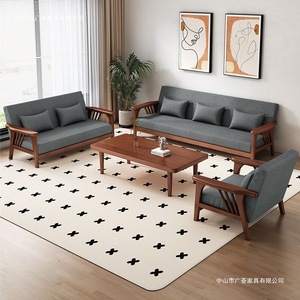 简约现代实木沙发茶几组合小户型客厅转角贵妃踏松木木沙发新中式