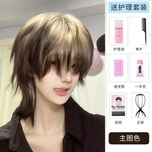【暹罗猫】假发男金色渐变狼尾鲻鱼头男生短发自然仿真男士全头套
