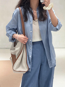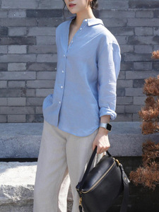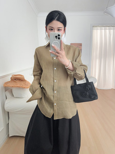Xiaohe 25 秋の新薄いラミー無地シャツ女性の多用途長袖トップ 1251C2156902