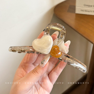 韩国高级感亚克力鲨鱼夹大号发卡显发量多咖色抓夹女头饰发夹