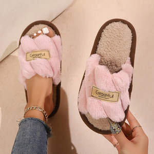 秋冬の女性用クロスボーダーファースリッパ、滑り止め屋内厚底ホームファーリー産後綿スリッパ