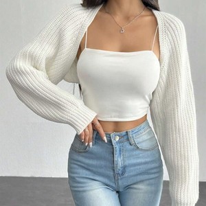 亚马逊跨境2025欧美纯色热卖罗纹披肩毛衣外套简约百搭针织开衫女