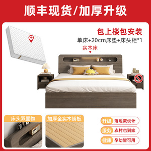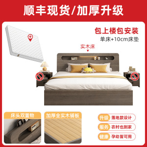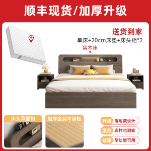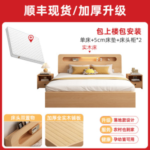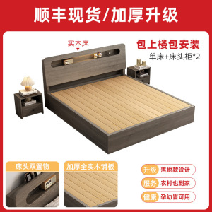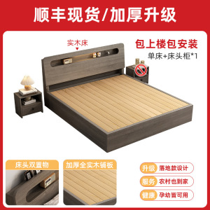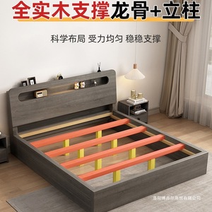 無垢材ベッド モダン シンプル ダブルベッド メートル レンタル ホーム マスターベッドルーム ストレージ エコノミー シングルベッドフレーム