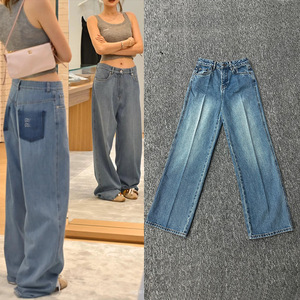 MIU ハイウエストストレートジーンズレディースレター刺繍ルーズカジュアルスリムシンプルワイドレッグパンツ 2025 新しいスタイル