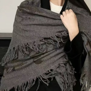 内蒙古纯山羊绒披肩围巾大方巾女秋冬保暖三角巾大马图流苏款