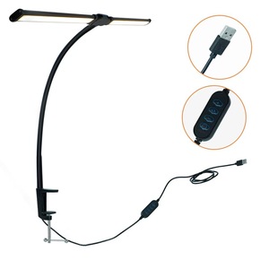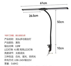 クロスボーダー LED デスクランプデスクトップオフィスグースネック双頭クリップデスクランプ学習読書学生特別な目の保護デスクランプ