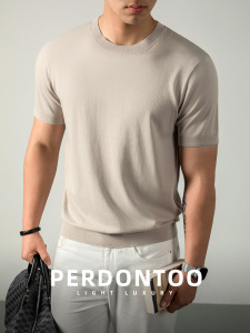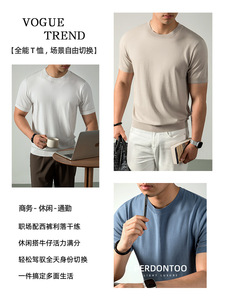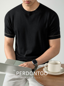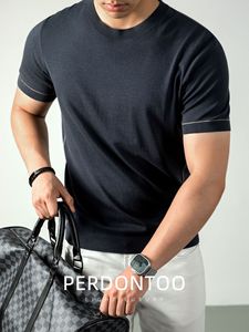 ライト高級マルベリーシルクリヨテンセーターメンズ半袖Tシャツ夏薄いハイエンドビジネス通気性カジュアルトップ
