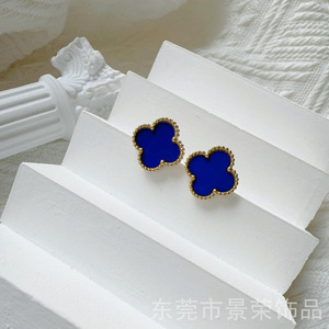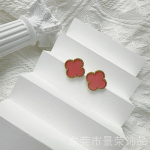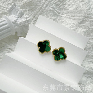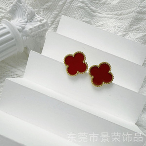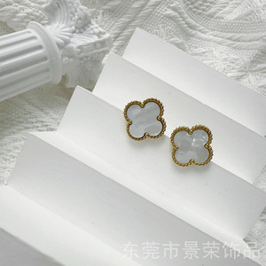 高バージョン 15MM 四つ葉のクローバー ステンレススチール イヤリング ニッチなデザイン、軽量で気質、多用途のイヤリング