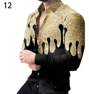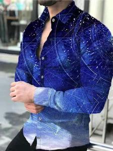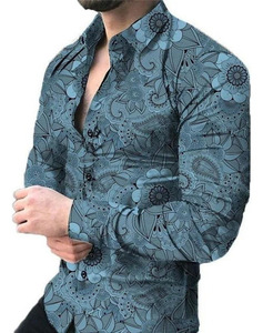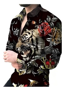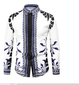 跨境外贸新款男3D印花欧美休闲街潮数码印花长袖衬衫男款修身衬衣