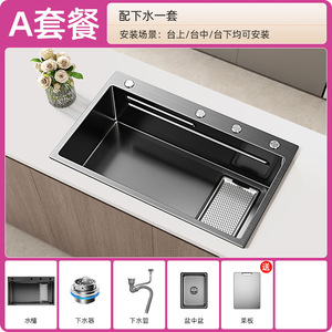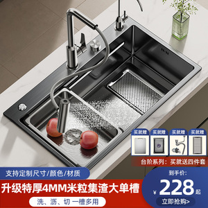洗菜盆单槽不锈钢厨房水槽大单槽台下盆加厚集渣过滤洗碗槽侧排水