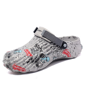 跨境大码男士夏季运动洞洞鞋户外涂鸦防滑涉水沙滩包头凉拖鞋代发