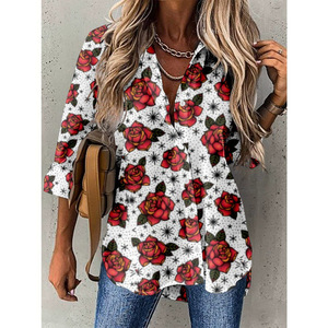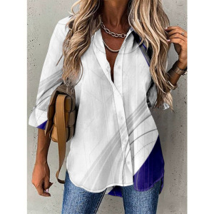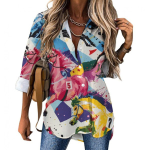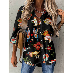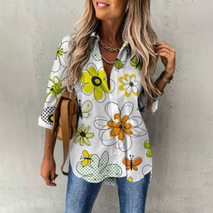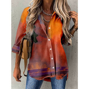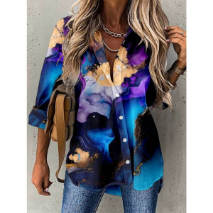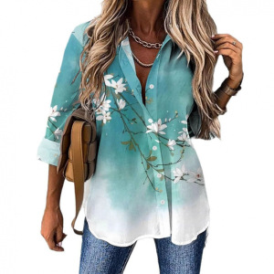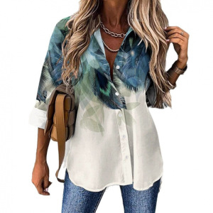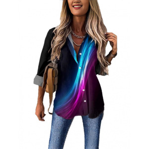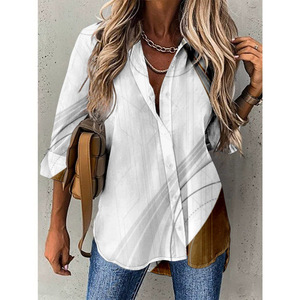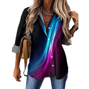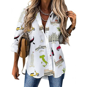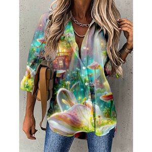 2025年欧美亚马逊跨境外贸夏季新款3D印花女长袖宽松大码开衫衬衣