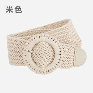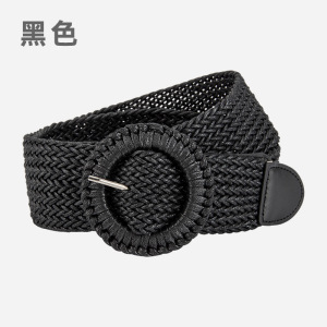 女性用織りヨーロッパとアメリカンスタイルのパンチフリーベルト、女性用合金ラウンドバックルドレスウエストバンドファクトリー