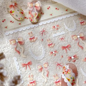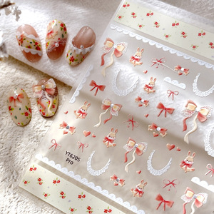 YITU エンボス加工リボンウサギネイルアートステッカー絶妙な甘いかわいいフレンチデコレーションステッカー YT6205
