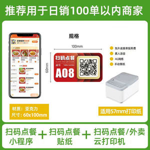 QRコードをスキャンして注文 + テーブルステッカー20枚 + 4G自動カット紙印刷