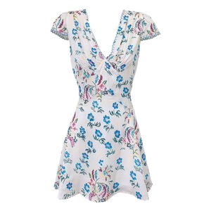 女性用フレンチスイートパストラルスタイルドレス、ウエスト痩身プリントAラインスカート、ロマンチックな海辺のリゾートスタイルショートスカート
