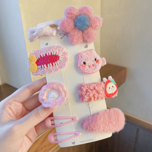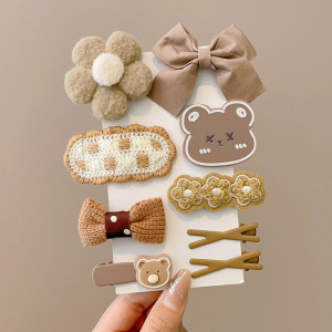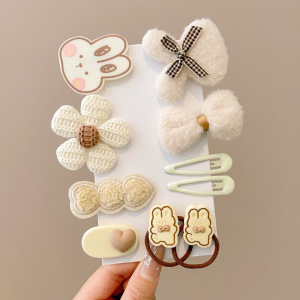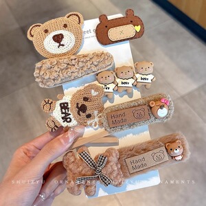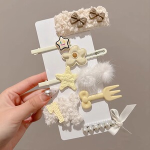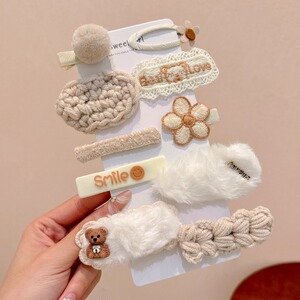 秋冬女童毛绒发夹不伤发侧边夹宝宝可爱奶咖色儿童头饰发卡