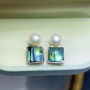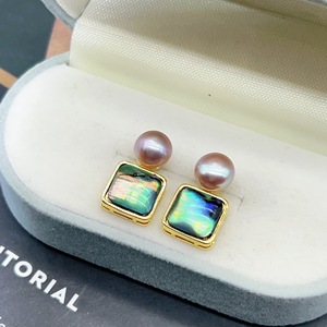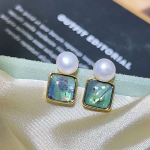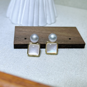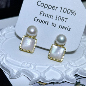 天然珍珠小众设计几何方形贝耳环简约时尚气质耳钉轻奢高级感耳饰