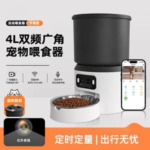 ペットの猫と犬用の国境を越えた新しい4Lスマートフィーダー、時間指定と定量的なリモートモニタリングと給餌、ビデオと音声