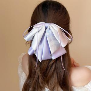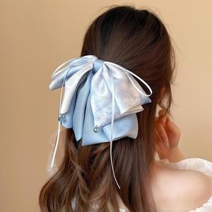 新中式泼墨晕染蝴蝶结飘带马尾夹女高级感甜美古风缎面后脑勺发夹