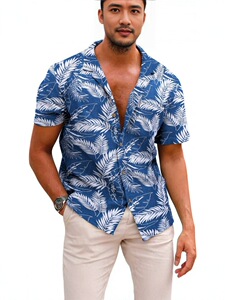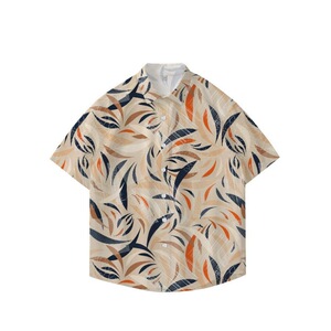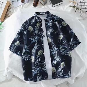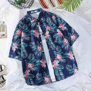 ハワイアンプリントメンズ半袖シャツ夏カジュアルラペル薄手通気性トップ