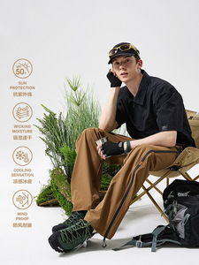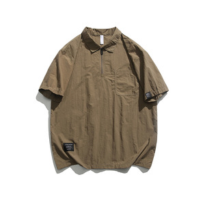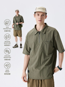 OOTD アウトドア登山日焼け止めハーフジップ半袖ポロシャツメンズ夏クール吸湿速乾ワークトップ