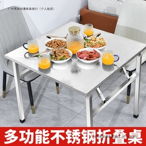 不锈钢折叠桌餐桌长方形家用吃饭桌夜市烧烤火锅商用便携摆摊桌子