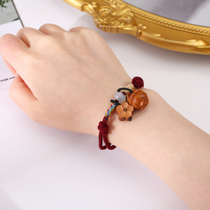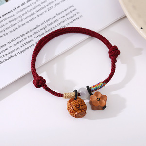 保真老桃木桃篮平安扣手串本命年红绳成人孩子情侣保平安手工