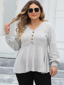 レディーストップスプラスサイズレディースベビードールシャツVネックピットフリースランタンスリーブTシャツゴールデンボタン装飾トップ