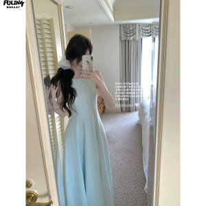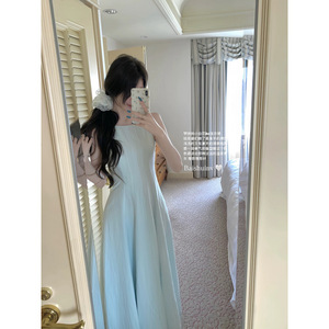 韩系时尚无袖背心连衣裙女夏季设计感小众修身显瘦温柔风休闲长裙