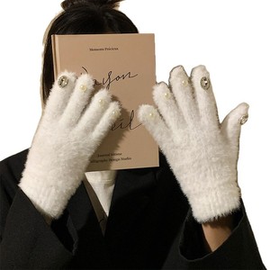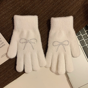 可爱水钻兔子分指毛绒手套女2024年秋冬季加厚保暖学生户外骑行潮