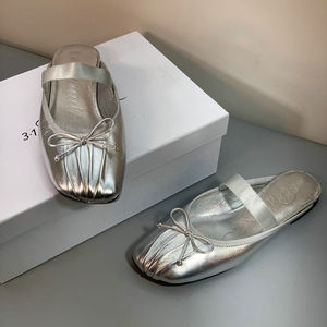 キャビネットレベル!広東省産の純粋なオリジナルの新しいシープスキンプリーツ弾性ワンライントゥキャップスリッパフラットメリージェーンシューズ