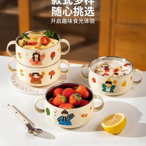 【抗菌316】ファミリーステンレス両耳ボウル 女の子Bスタイル(蓋+吸盤付き)
