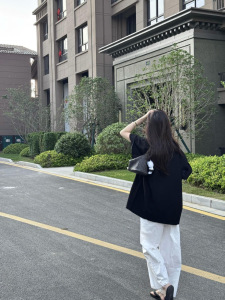 2025年新作夏のリラックスウェア、黒の半袖Tシャツ、右肩ルーズトップ、女性用万能カジュアルパンツ