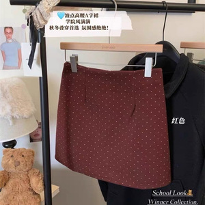 韓国水玉ウールスカート女性のための 2024 秋と冬の新しいハイウエスト A ラインスカート露出防止ヒップカバーショートスカート Shenglong