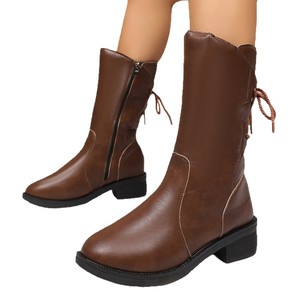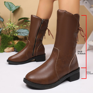 复古跨境大码加绒中筒靴2025冬季新款粗跟侧拉链英伦风马丁靴女