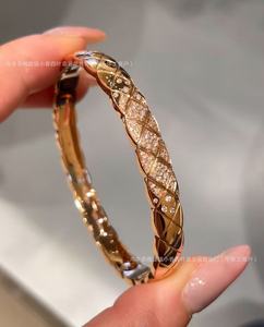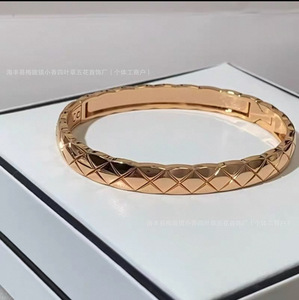 香奶奶窄版宽版coco菱格纹手镯精雕高质量无钻镶钻高级米金色手环