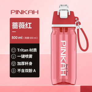 送清洁套装【喷雾水杯】-蔷薇红800ML-进口Tritan